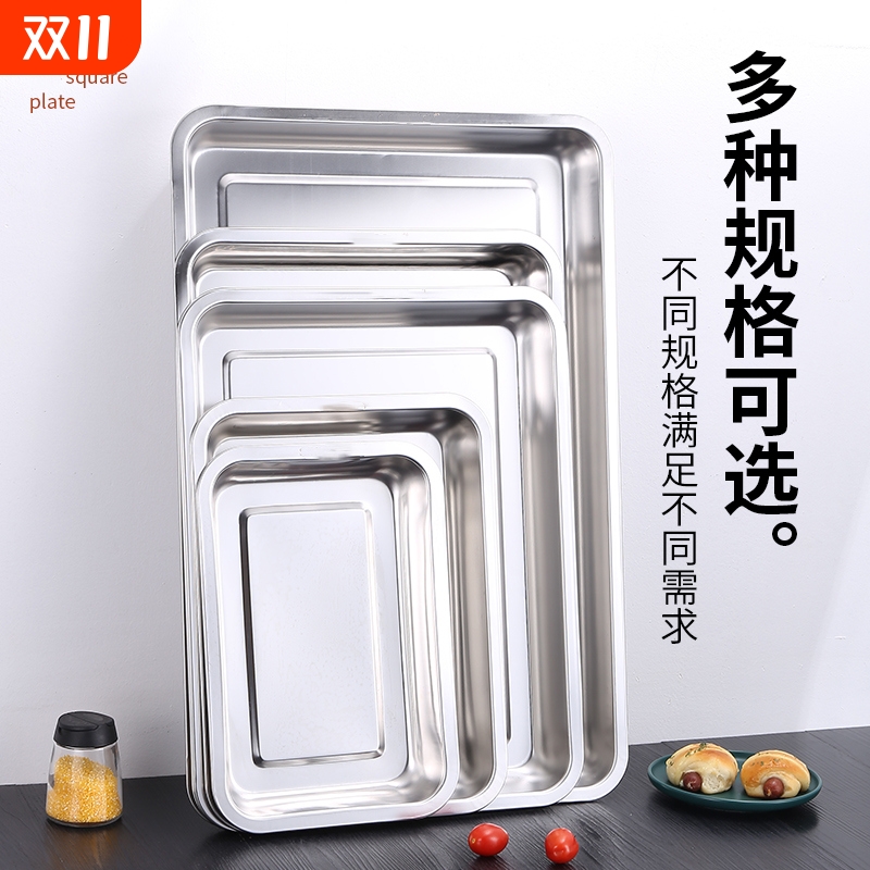 不锈钢方盘长方形托盘商用蒸饭盘烧烤盘餐盘铁盘子菜盘加厚烤鱼盘