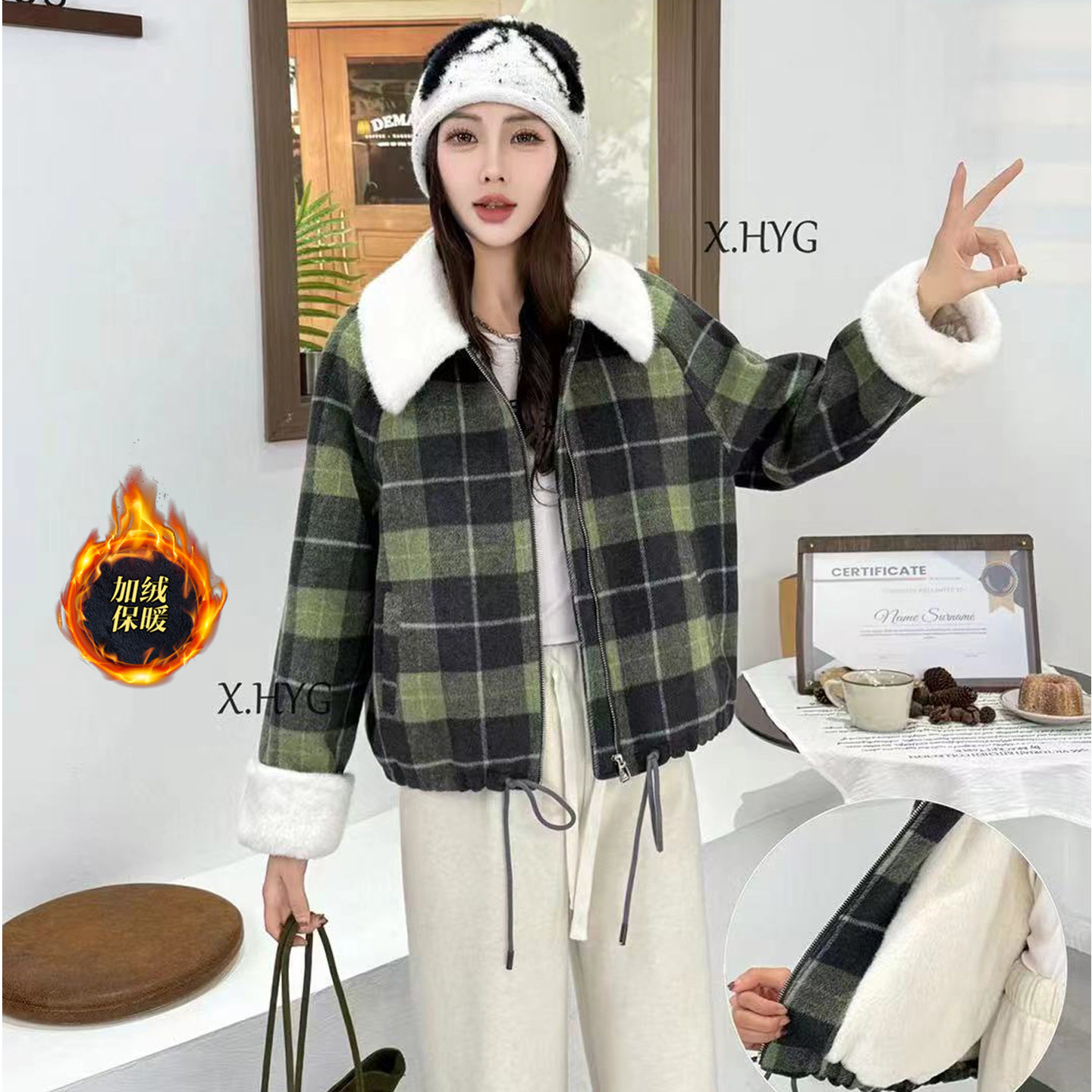 - 加绒大衣女
