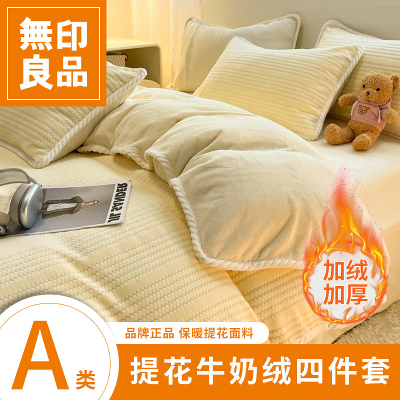 无印良品牛奶绒床上四件套提花2025新款秋冬床单加厚加绒四件套