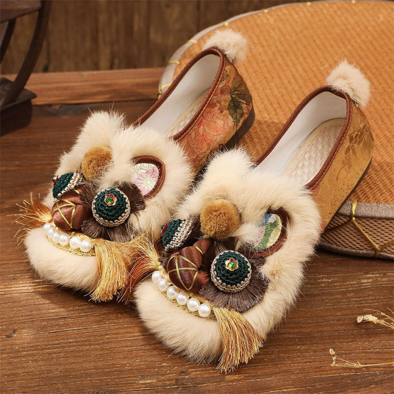 冬加绒原创非遗虎头鞋女新中式手工绣花鞋软底保暖平底民族风棉鞋