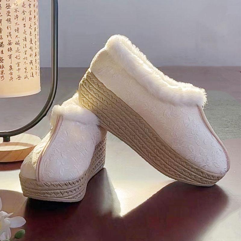 冬季加绒汉服鞋女轻便厚底国风古装棉鞋茶艺师禅修鞋民族风绣花鞋
