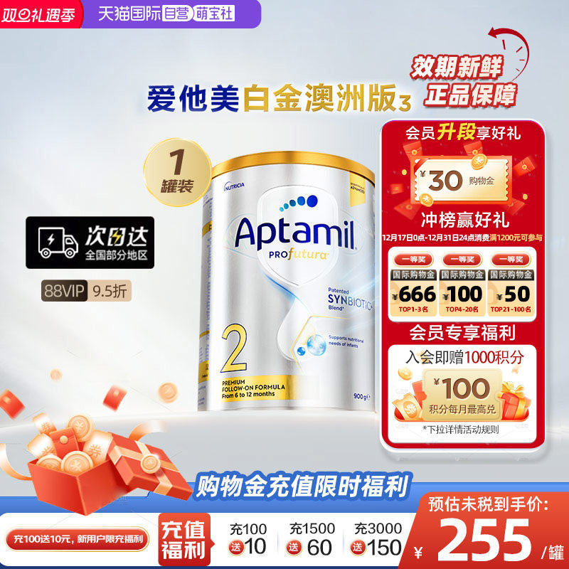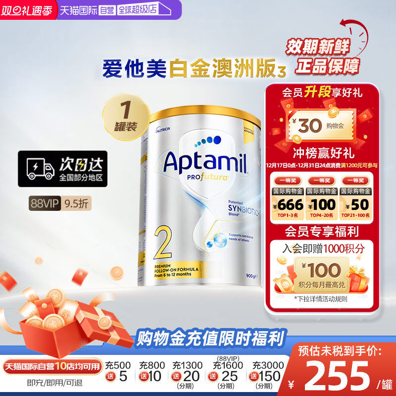 【下拉详情领优惠】Aptamil爱他美白金奶粉2段6-12个月900g*6罐