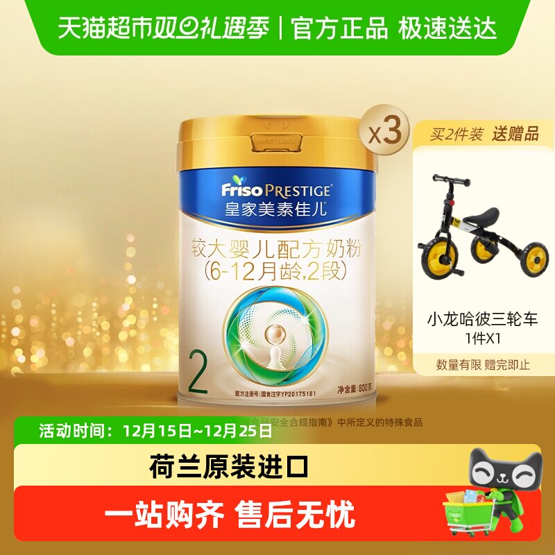 【新国标】皇家美素佳儿较大婴儿配方奶粉2段(6-12月)800g*3罐