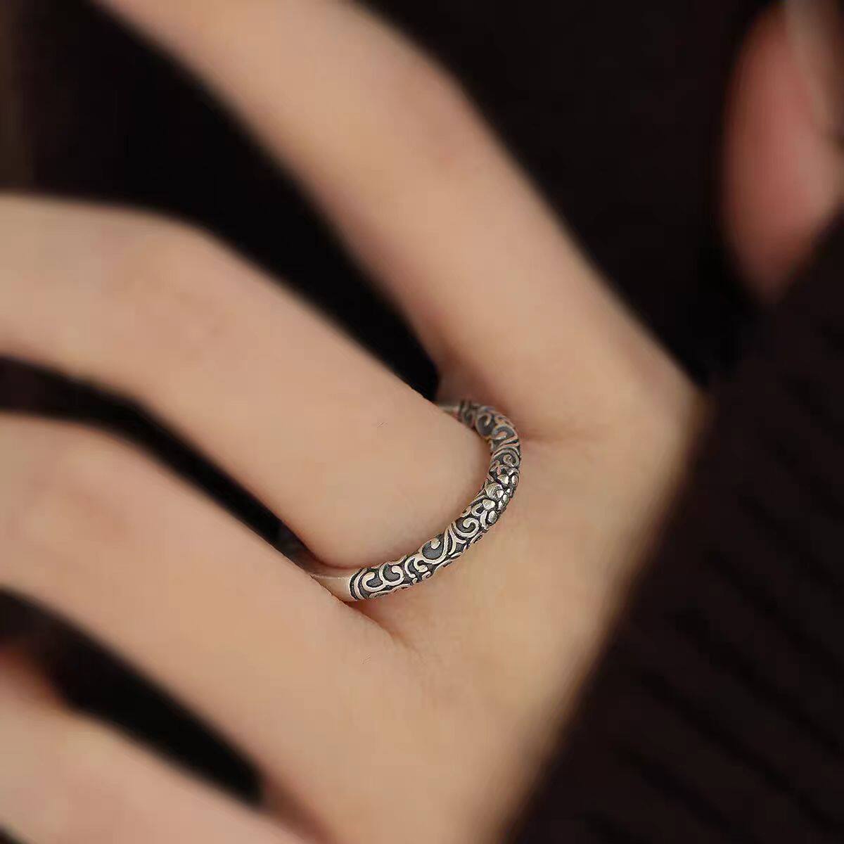 925银复古如意金箍棒戒指女新中式祥云纹高级感开口可调节食指戒