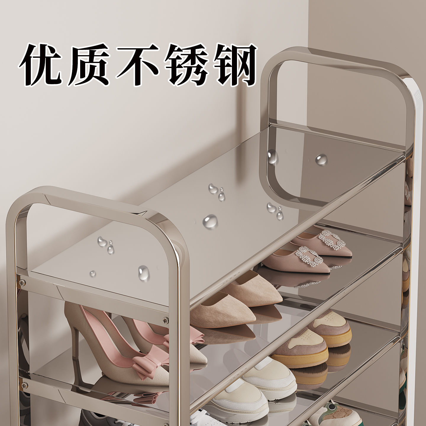 不锈钢鞋架家用多层门口好看入户门省空间简易组装结实耐用带轮子