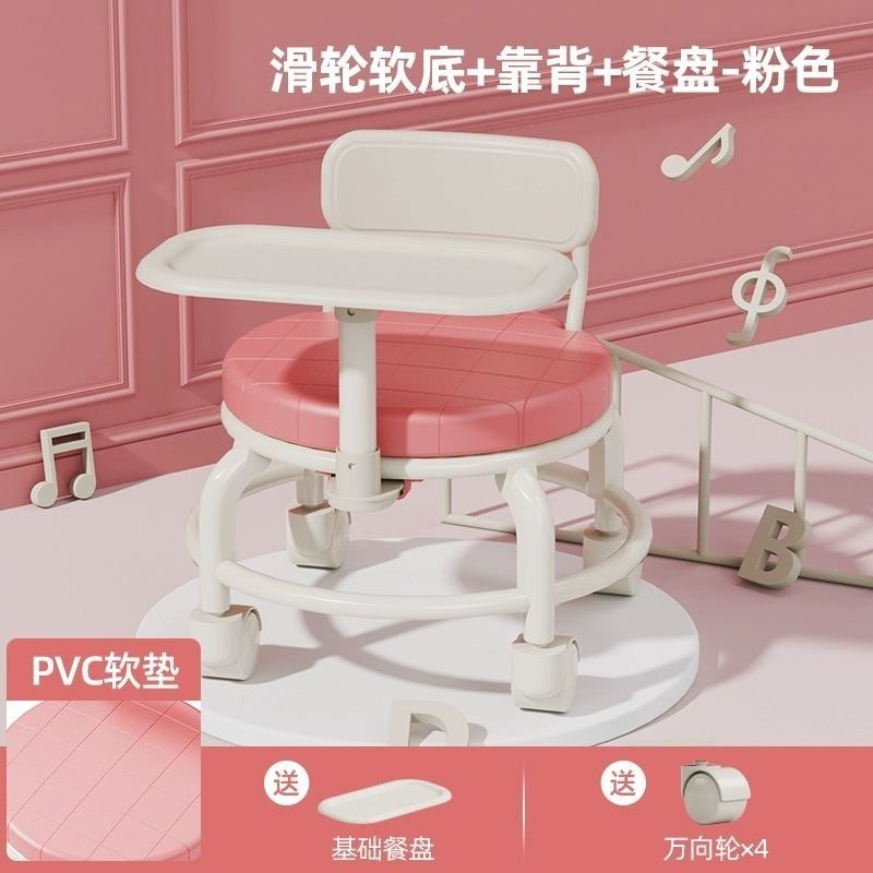 滑轮矮凳万向轮小凳子家用多功能儿童餐椅成长椅靠背小椅学习吃饭
