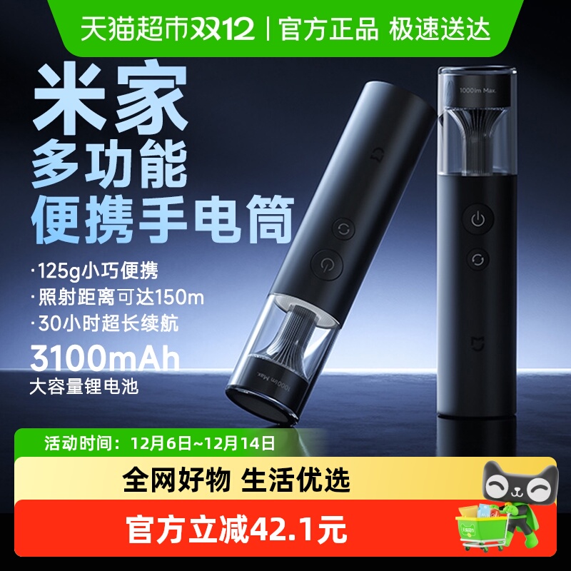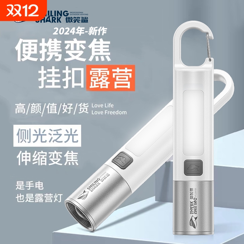 微笑鲨手电筒强光充电家用小型便携超长续航大容量超亮耐用工作灯