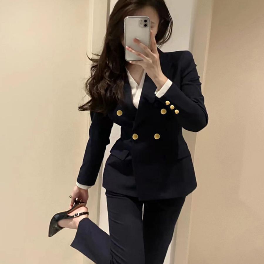 钡轩高端西装套装女初春新款公务员面试职业正装双排扣修身西服女