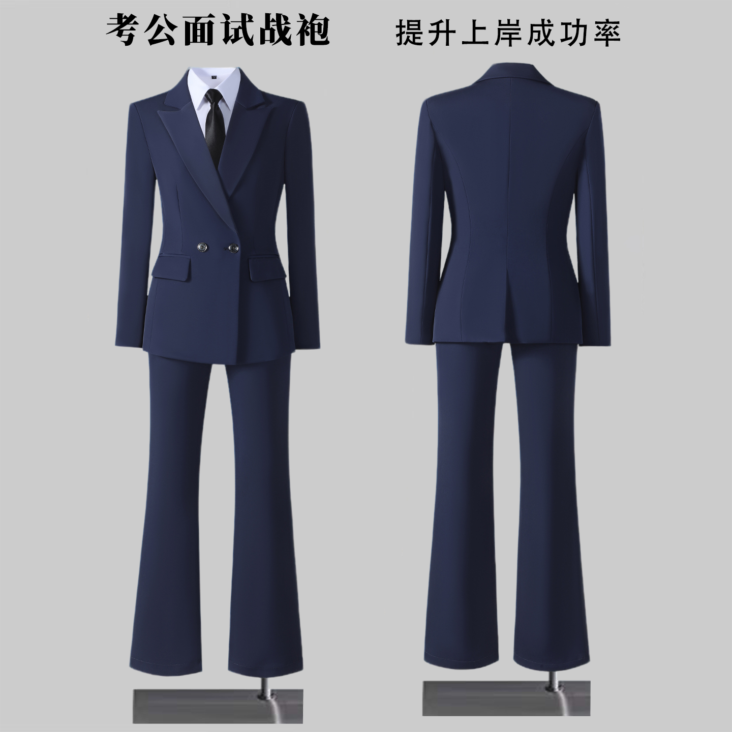 西装套装女修身高端职业套装售楼部工作服女公务员面试雾霾蓝黑色