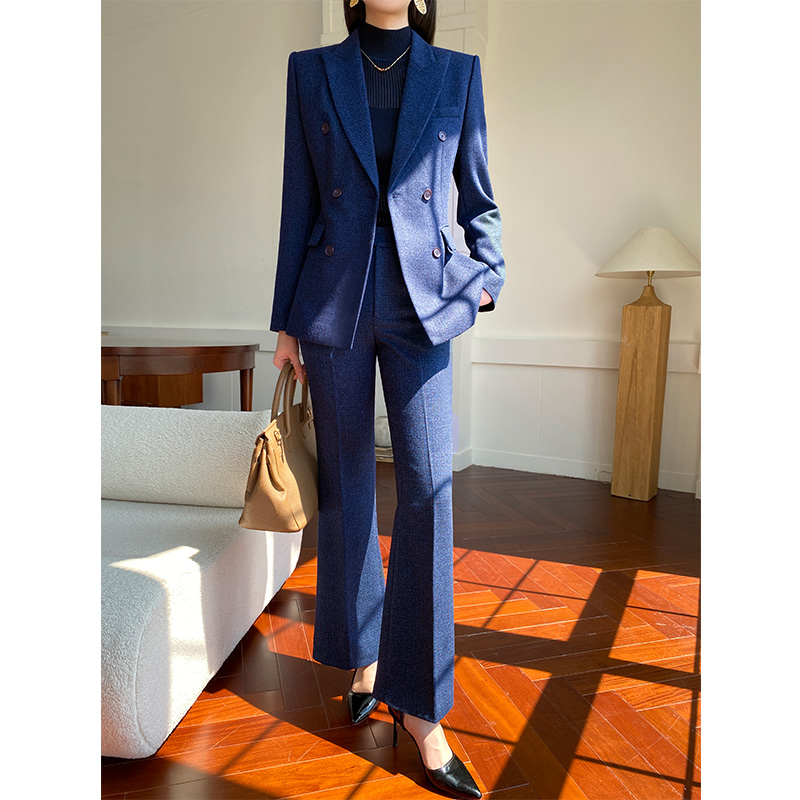 精致冬季加厚西装套装女微喇裤气质职业女装主持公务员面试工作服
