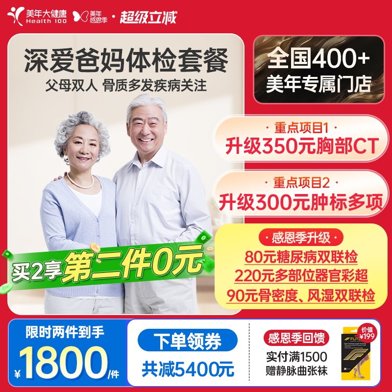 【第二件0元】美年大健康深爱爸妈188TMMN00父母体检买1赠1体检