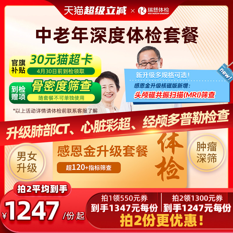 【领直降券!】瑞慈体检感恩金升级套餐送父母爸妈中老年男女通用