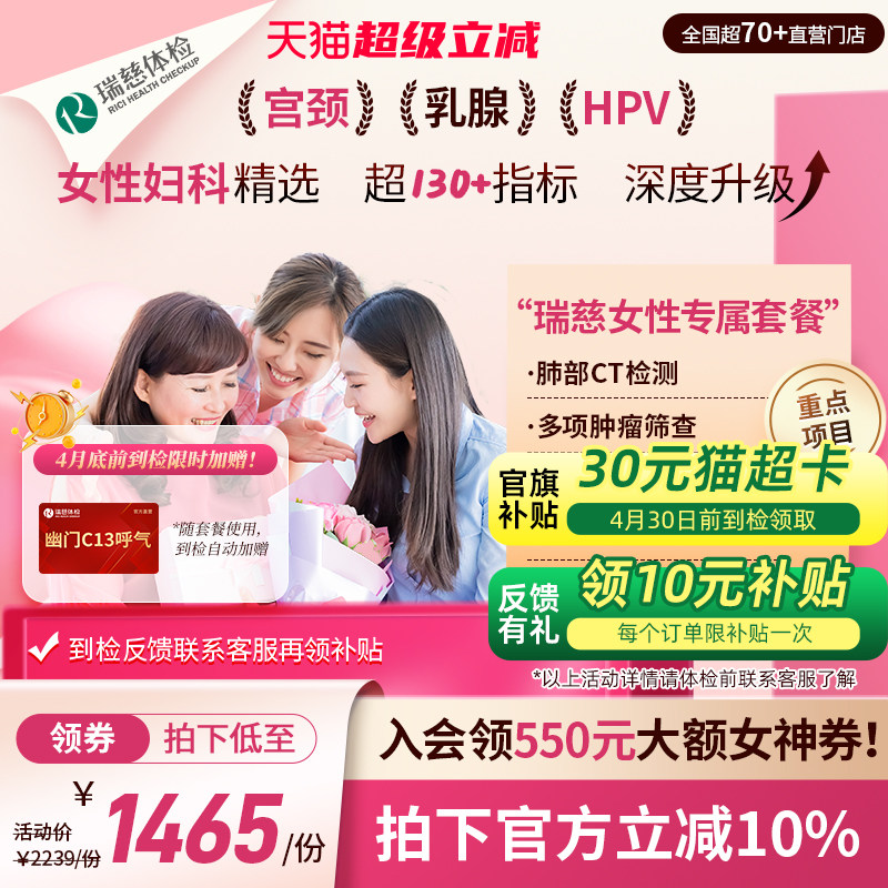 【领直降券!】瑞慈体检 女性专属套餐妇科HPV乳腺幽门肺CT送妈妈
