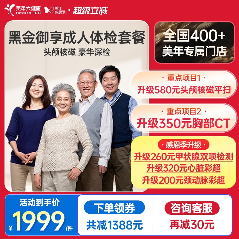 美年大健康旗舰店黑金御享深度体检成人优选男女通用186TMMN00