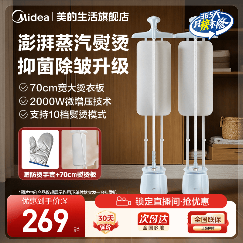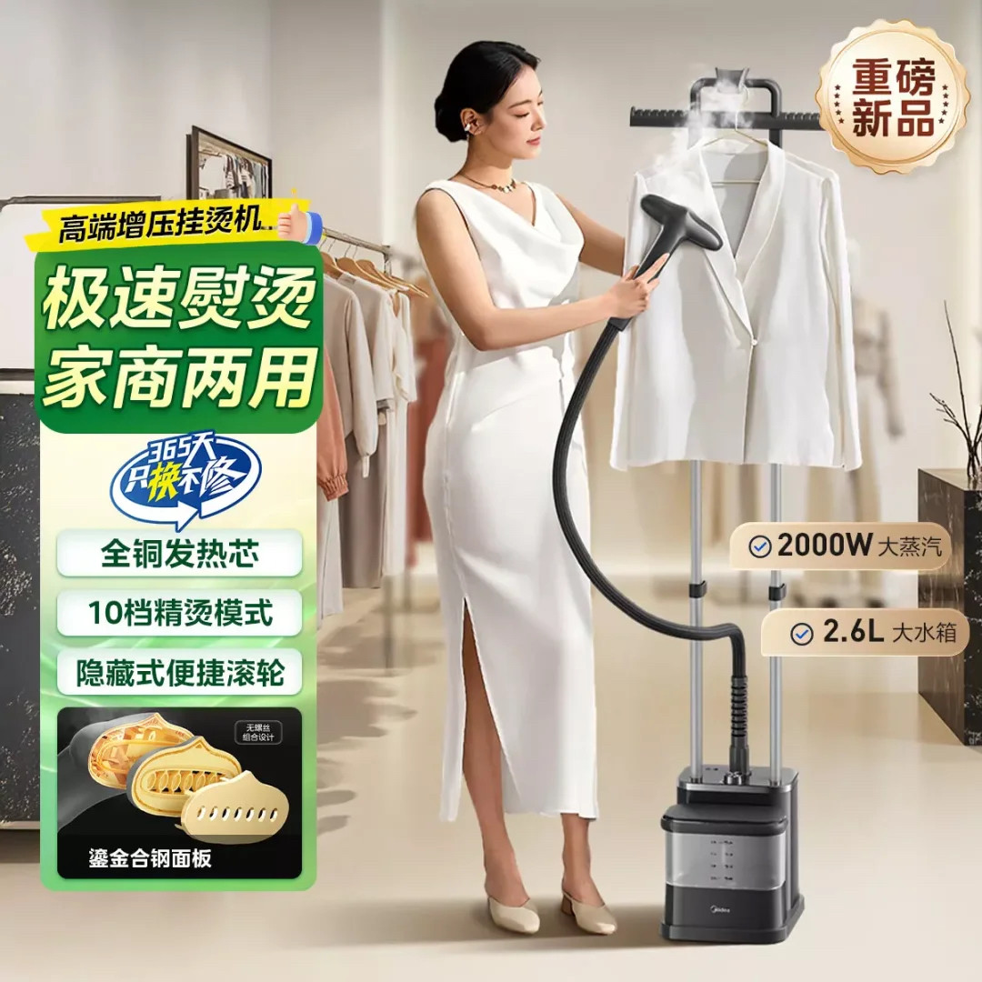 美的挂烫机家用2025新款小型立式蒸汽熨斗商用服装店衣服熨烫机