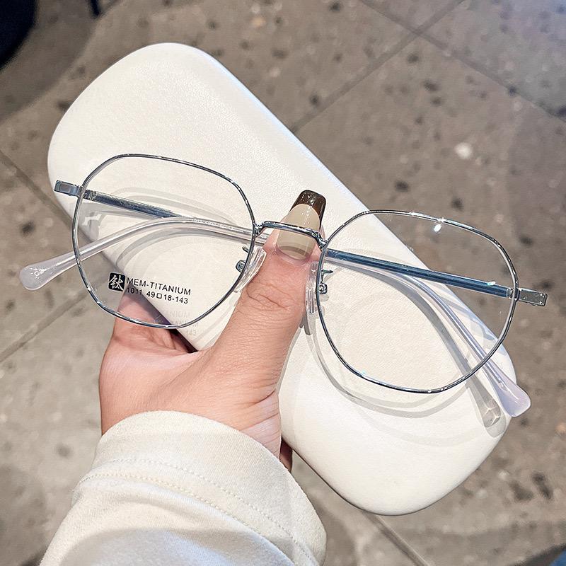 多边形纯钛眼镜框网红款配近视眼镜女有度数眼睛框架韩版潮圆脸男