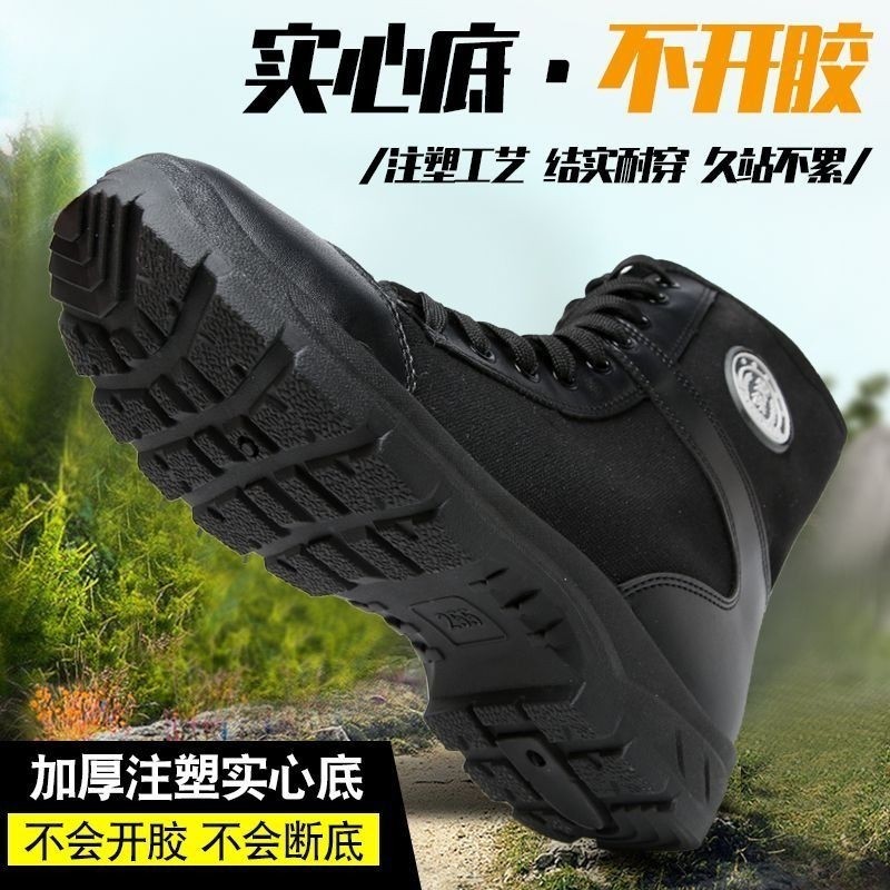 新式作战靴男保安高帮透气战术秋冬黑色加绒安检帆布训练鞋军战靴