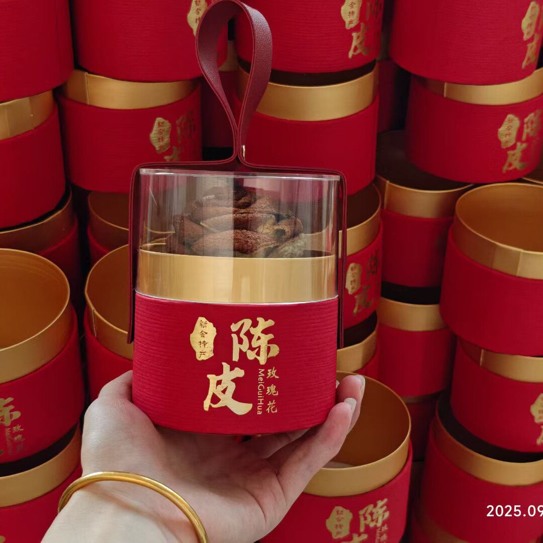 圆筒喜糖盒高级手提免折叠结婚米金色亚克力陈皮玫瑰花包装罐礼盒