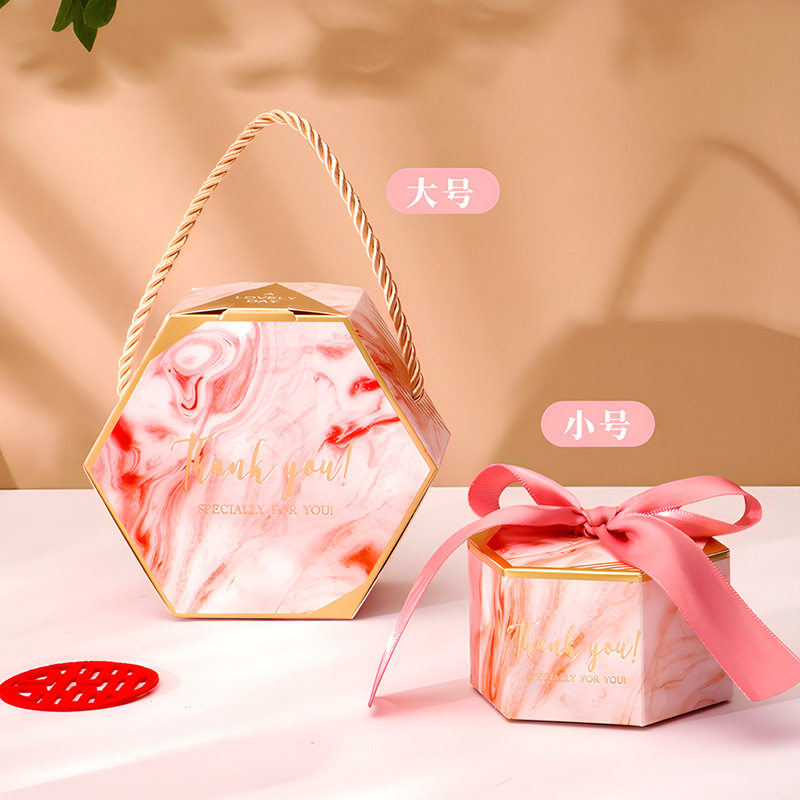 热销新款手提结婚婚礼用品六角喜糖盒 创意高档喜糖包装糖果跨境