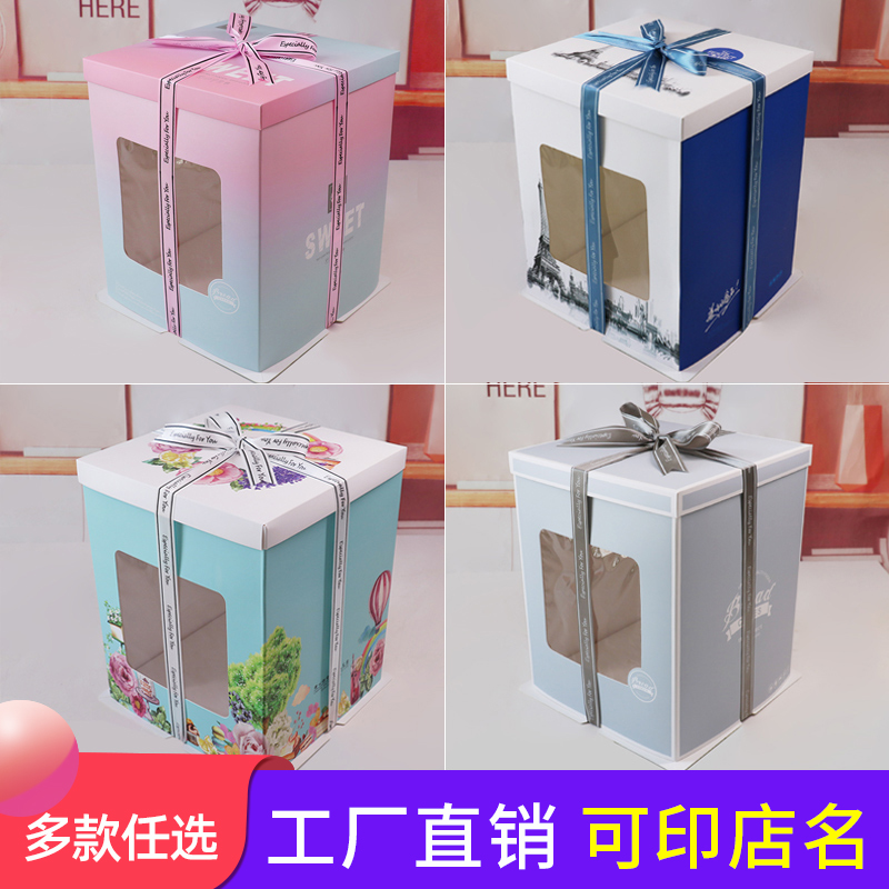 生日蛋糕盒厂家直销开窗芭比6 8 10寸12方形三层加高纸烘焙包装盒