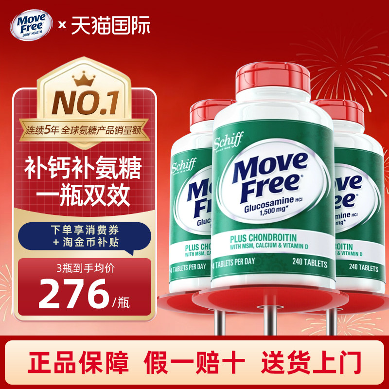 240粒Move Free 维骨力高钙氨糖软骨素加钙片加维d钙中老年美国