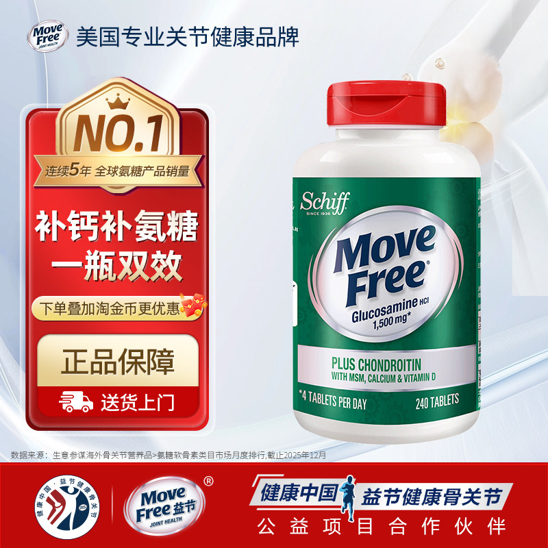 益节MoveFree氨糖加钙片中老年养护关节软骨素正品官方旗舰店