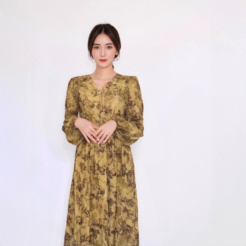 - 长裙碎花雪纺连衣裙