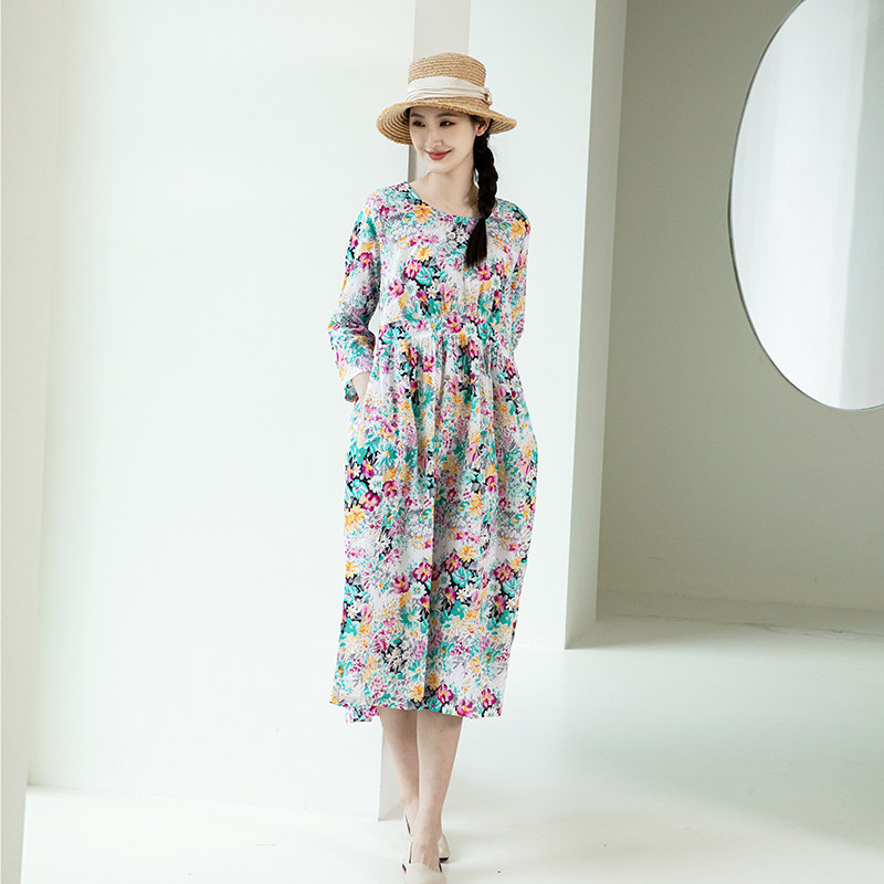 - 棉麻长裙连衣裙