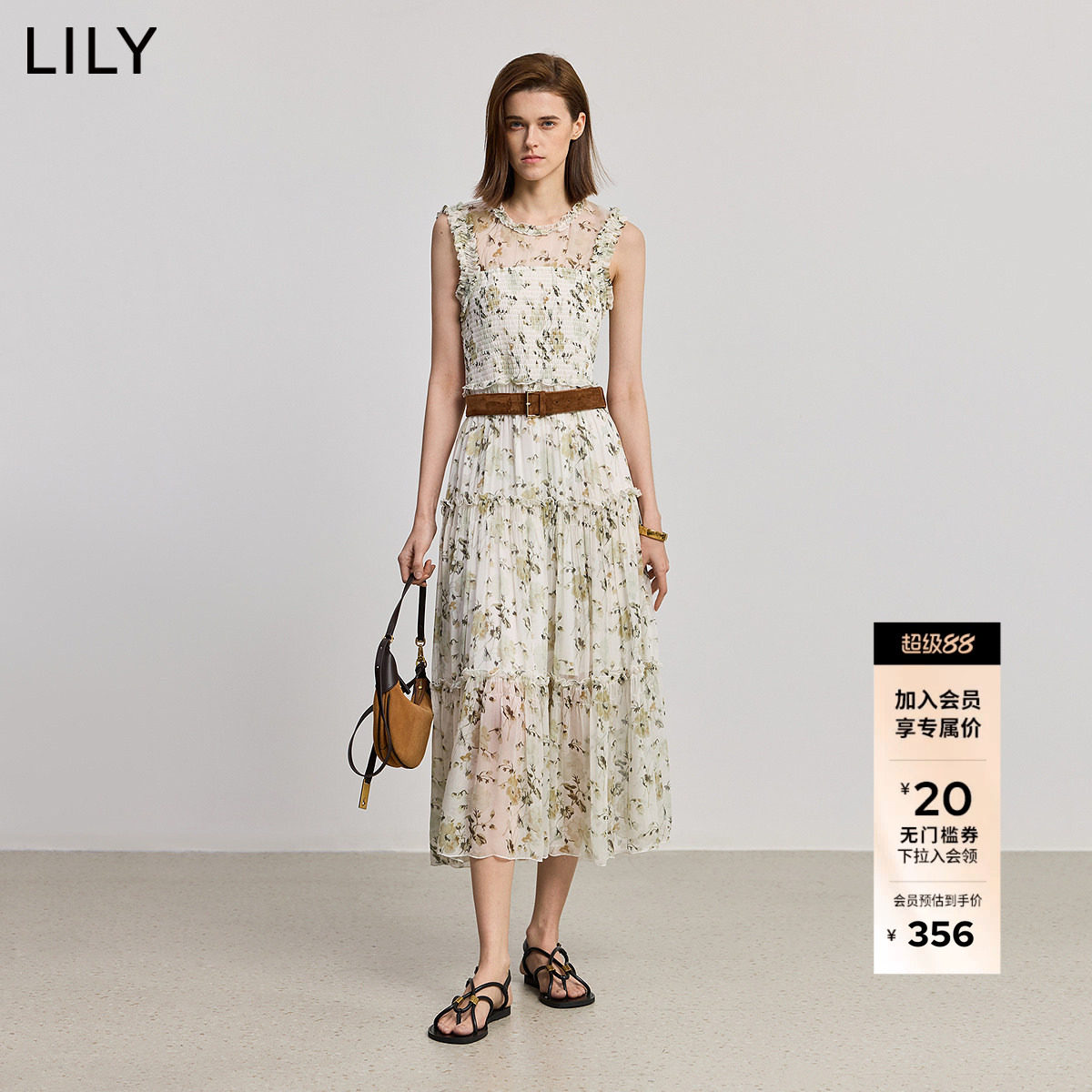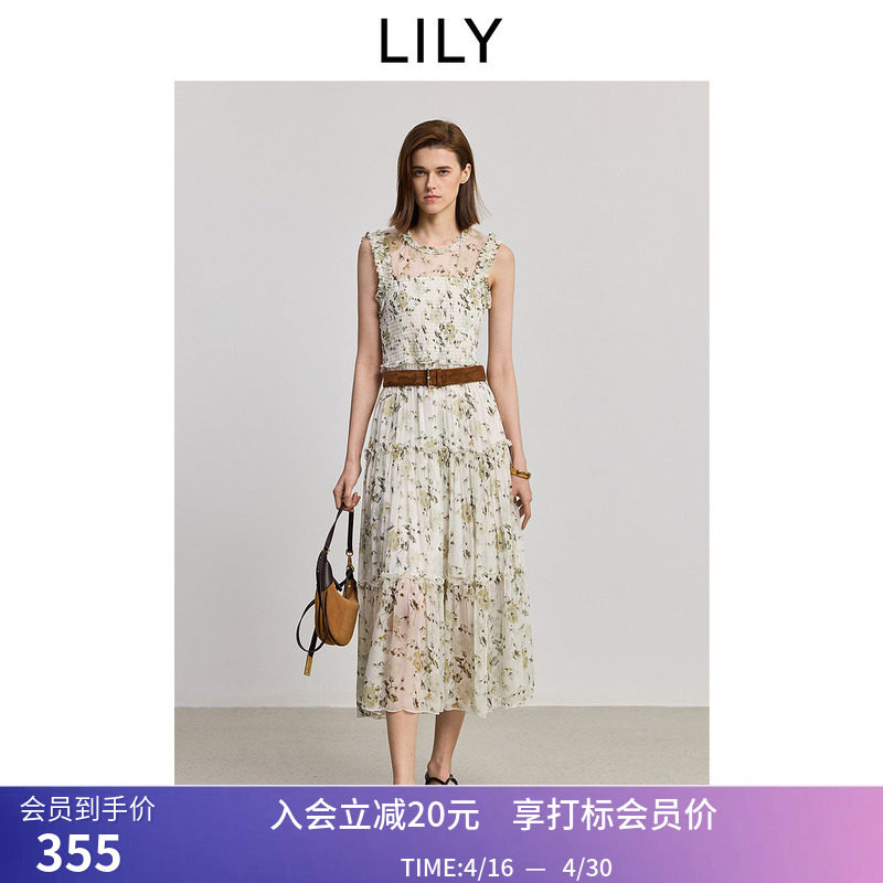 【商场同款】LILY2025新款女装波西米亚风休闲收腰碎花裙连衣裙
