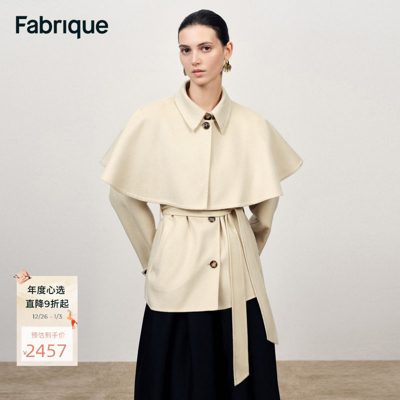 Fabrique可拆卸斗篷 羊羔毛短大衣25年冬季新品设计感毛呢外套女