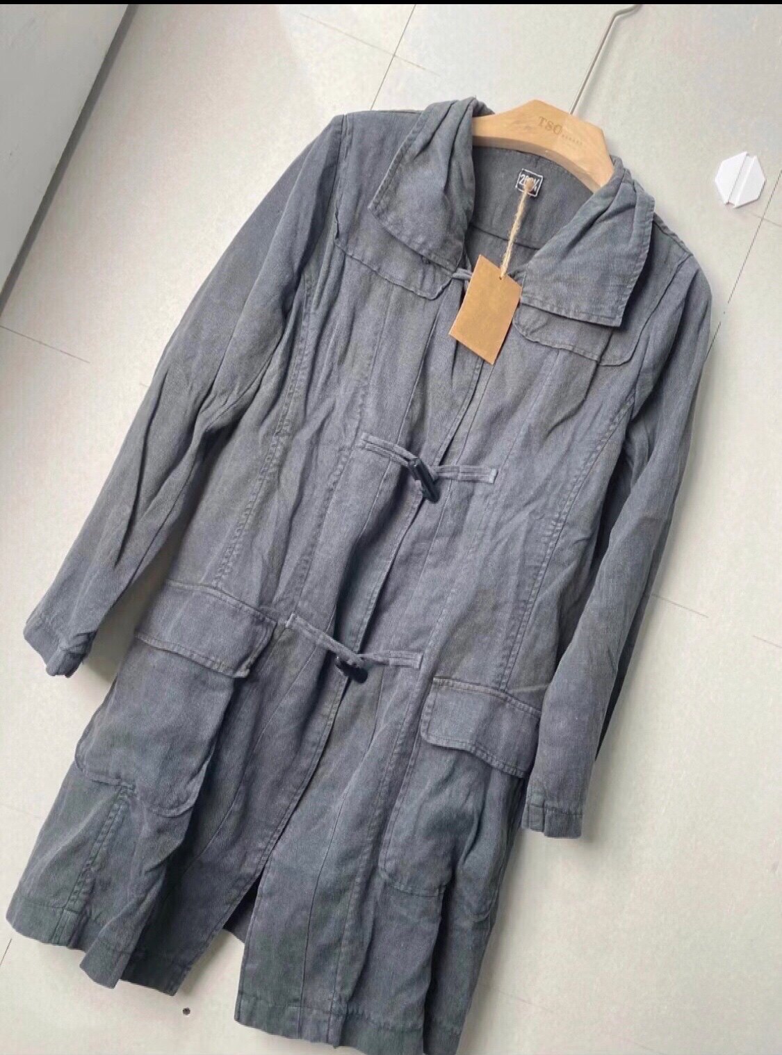 【秀场同款】Fabrique烟灰混色羊毛中长款牛角扣女士毛呢复古大衣