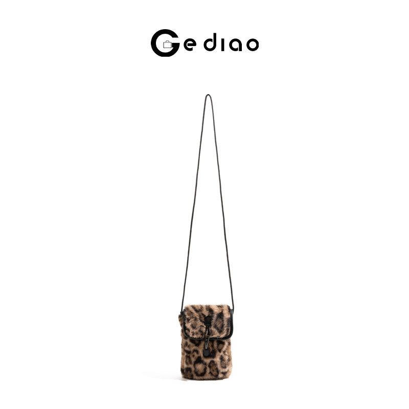 格调studio韩系豹纹牛角扣女包2025冬季毛毛手机包通勤单肩斜挎包