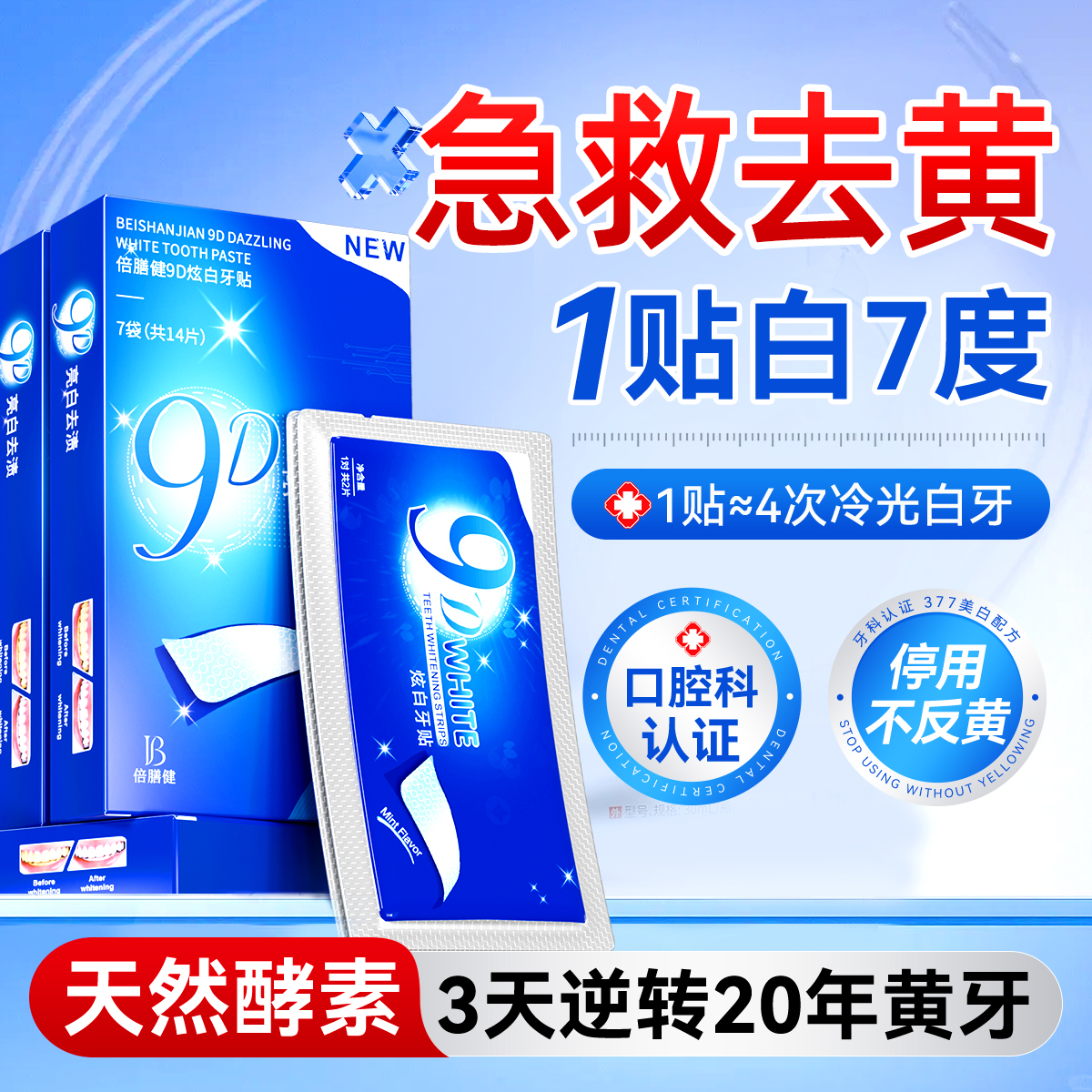 9D美白牙贴去黄洁白牙齿贴片神器去除牙渍牙黄污垢速效遮盖炫白