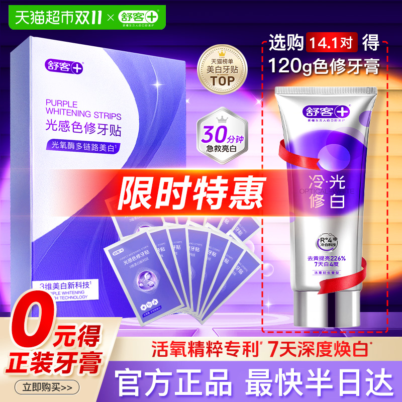 【抖音同款】舒客色修牙贴小紫贴牙齿美白牙贴去黄亮白美牙贴美白