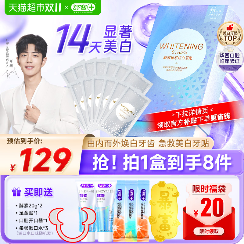 舒客美白牙贴去黄洁白美牙美白牙齿贴片美白强效炫白官方旗舰正品