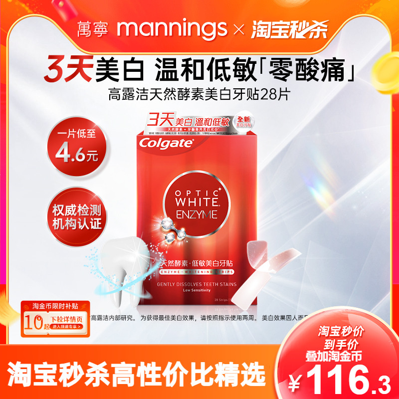 高露洁美白牙贴温和清洁牙渍低敏不刺激去黄洁白焕白牙齿进口28片