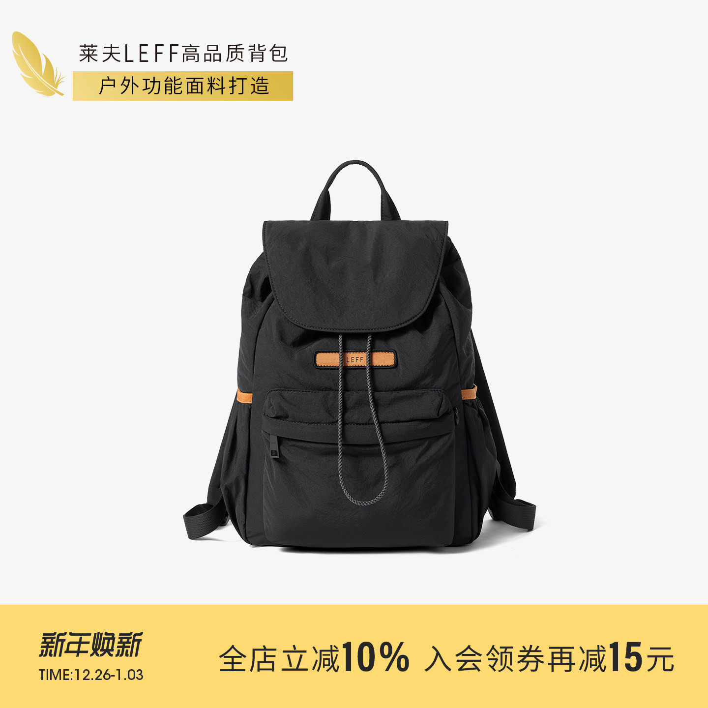 莱夫超轻量化小背包黑色旅行双肩包女旅游轻便高颜值户外登山背包
