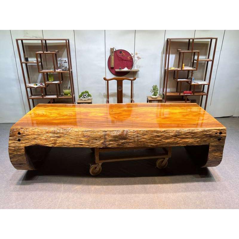 实木奥坎大板苦瓜皮自然边办公会议长桌茶桌吧台公司开业乔迁送礼