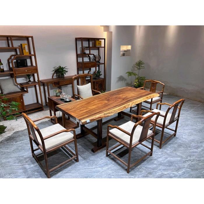 奥坎大板茶桌原木整板茶台实木茶几办公红木胡桃木餐桌花梨木组合
