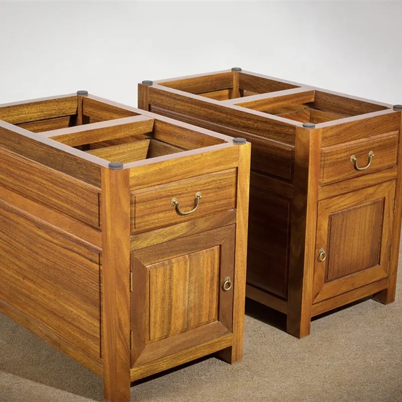 奥坎大板脚柜新中式实木茶桌腿原A木一门一抽实木餐桌柜茶板柜原
