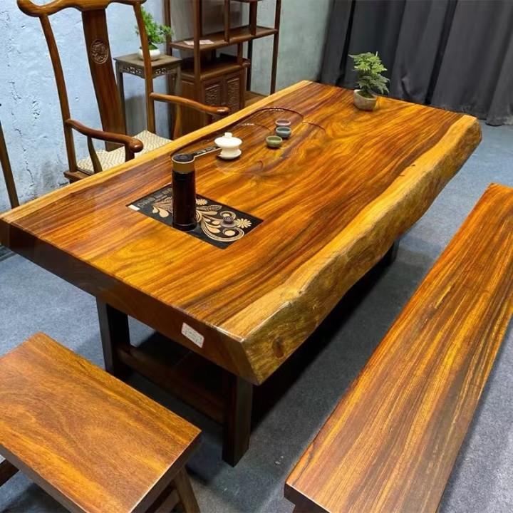 胡桃木实木茶桌白蜡木奥坎大板巴花鸡翅木红塔利黑檀黄花梨柚木桌