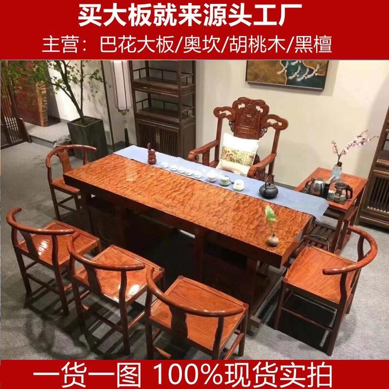 奥坎实木大板茶桌椅组合原木餐桌实木整块书桌巴花胡桃木茶台办公