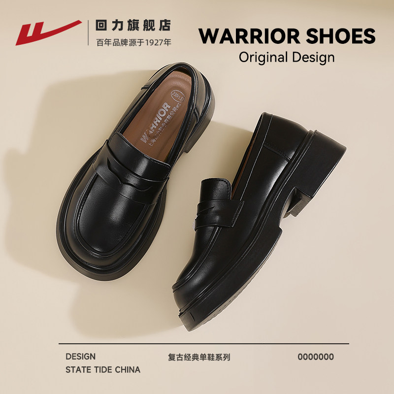 回力乐福鞋女2026春季新款厚底英伦单鞋软底鞋子黑色粗跟jk小皮鞋
