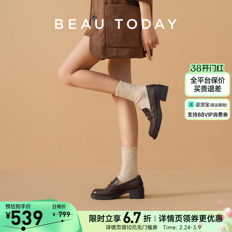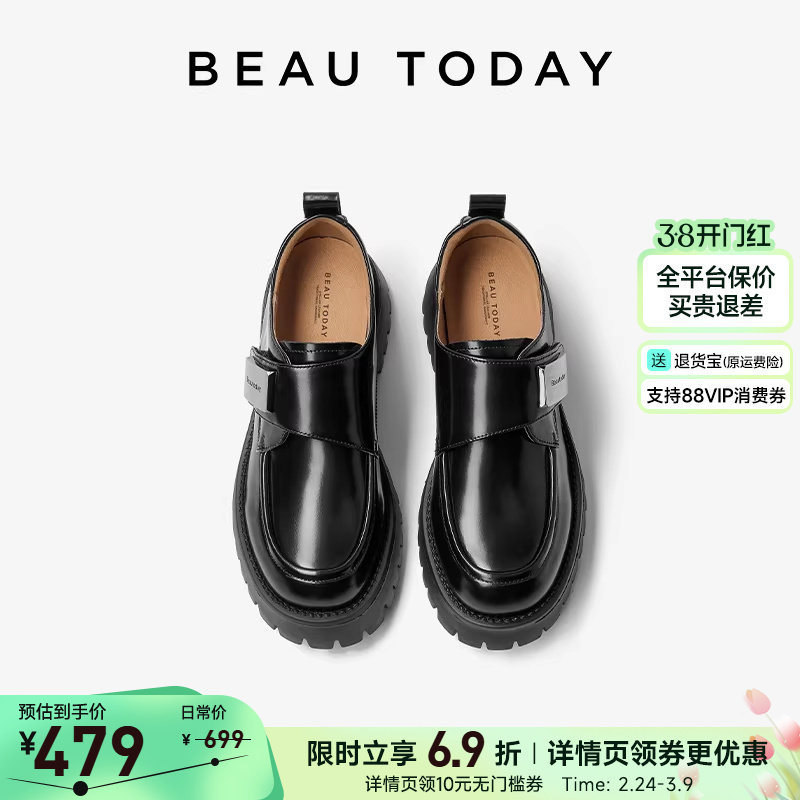 【焦糖金币】BeauToday厚底乐福鞋女英伦风miu系小皮鞋真皮单鞋