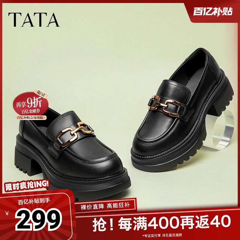 Tata他她高跟乐福鞋女厚底小皮鞋英伦风单鞋秋季商场奥莱GOK02AA4