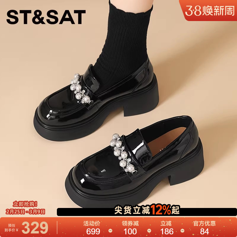 杨幂同款思加图2026新款秋叶伯爵乐福鞋英伦厚底小皮鞋单鞋女鞋子