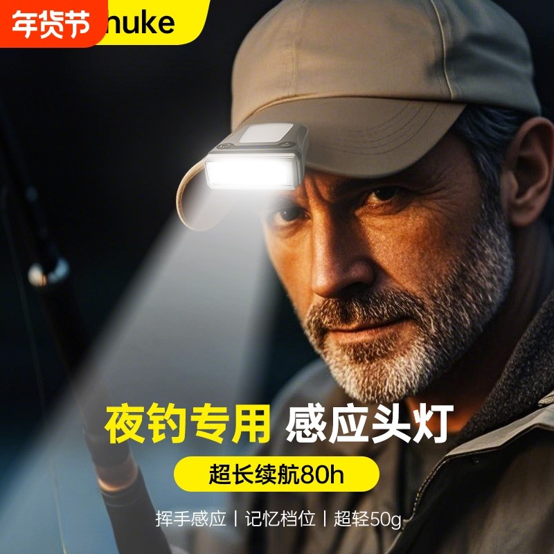 2025新款夜钓头灯钓鱼专用感应帽檐灯头戴式户外夹帽灯充电强光亮