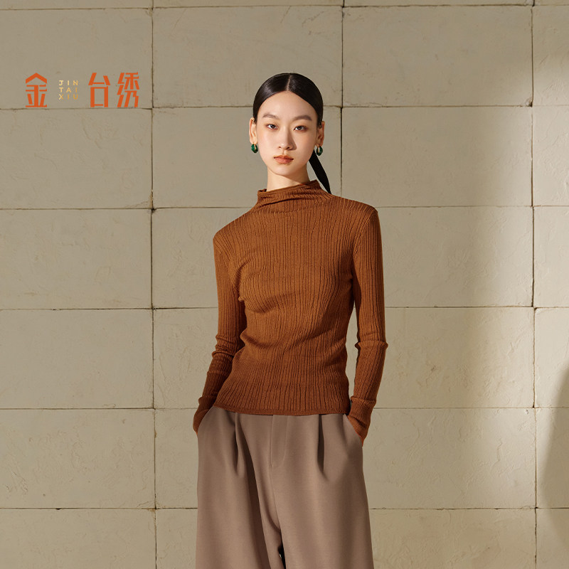 女款羊绒衫,半高领国际一线品牌代工厂,康赛妮小山羊绒纱线驼色