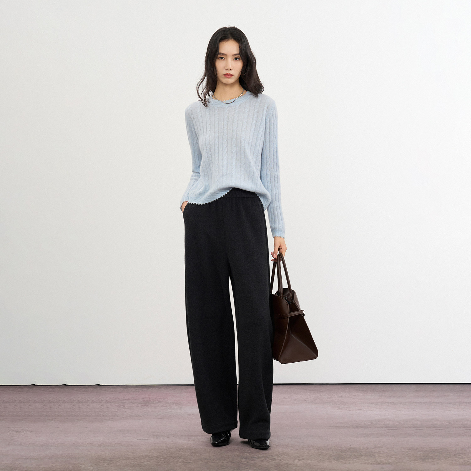 CLMX老钱风羊绒绞花圆领毛衣26支100%山羊绒纱线秋冬通勤上衣女