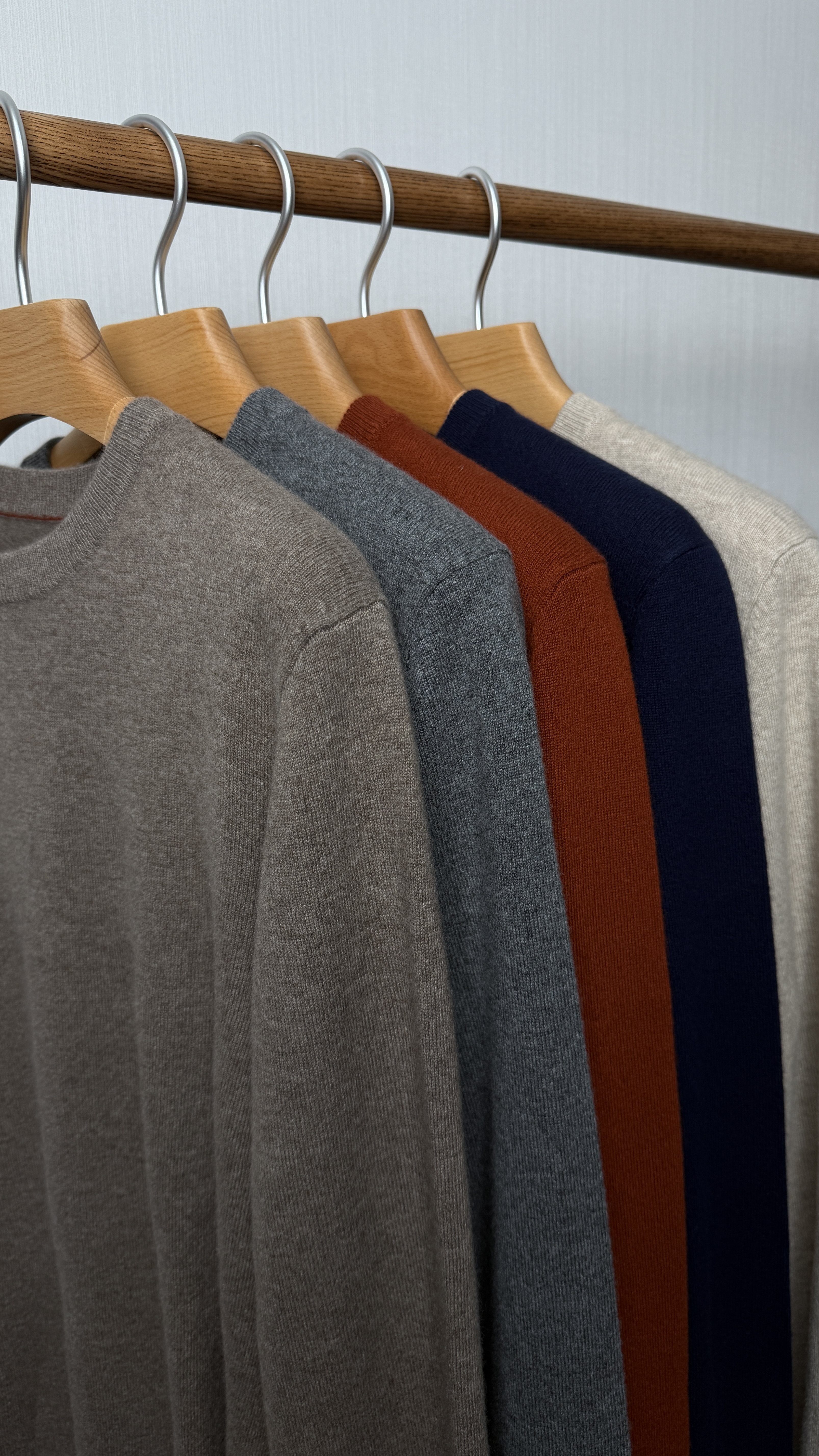 男款圆领羊绒衫国际一线品牌代工厂+康赛妮小山羊绒纱线驼色百搭